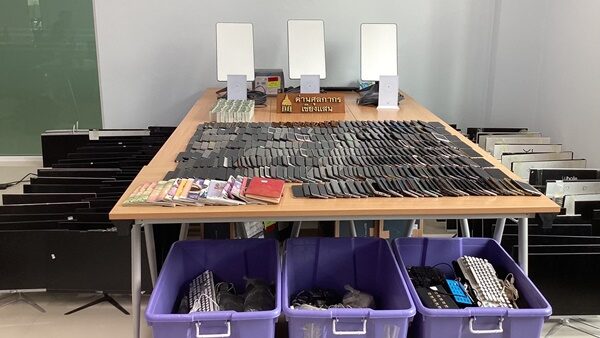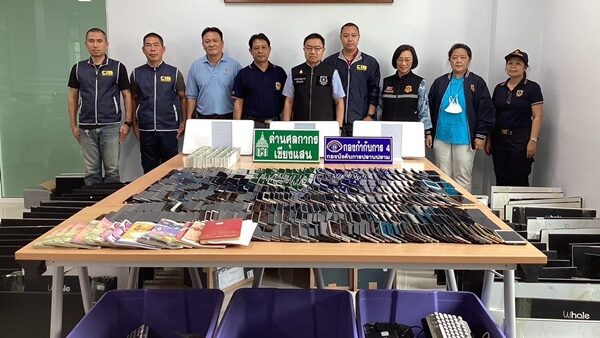เมื่อเข้าตรวจสอบพบเครื่องคอมพิวเตอร์ All In One จำนวน 94 ชุด พร้อมอุปกรณ์ส่วนควบอื่น ๆ, โทรศัพท์มือถือ จำนวน 347 เครื่อง, สมุดจดบันทึกเป็นภาษาจีน จำนวน 15 เล่ม และสิ่งของอื่น ๆ จำนวนมาก