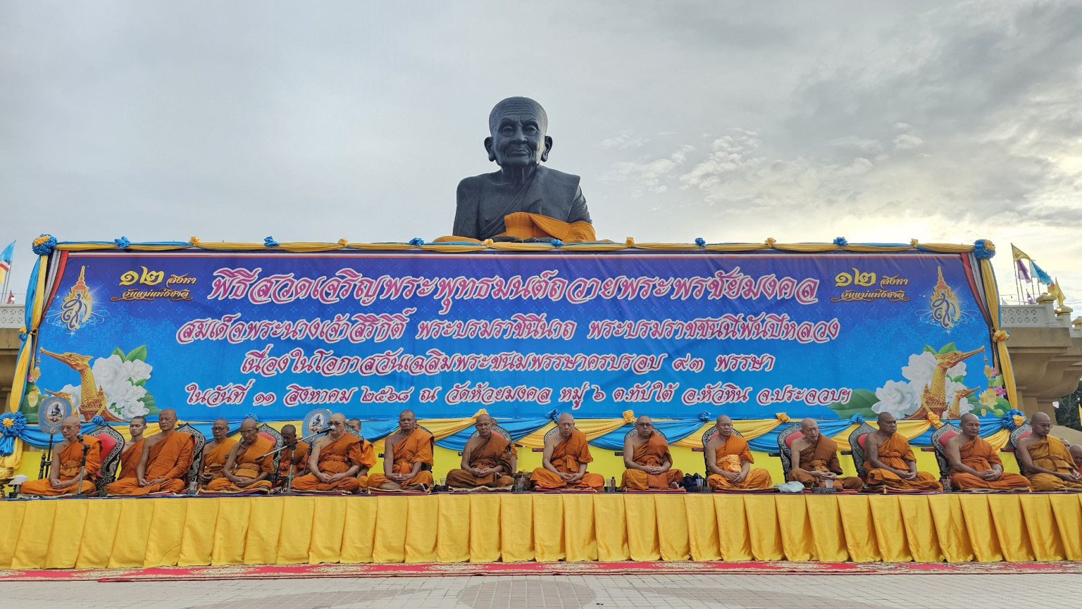 วันที่ 11 ส.ค.68 ผู้สื่อข่าวรายงาน ว่า ลานหน้าหลวงพ่อทวดองค์ใหญ่ นามาภิไภย(สก.)วัดห้วยมงคล ต.ทับใต้อ.หัวหิน จ.ประจวบคีรีขันธ์ นาย ประสูตร หอมบรรเทิง นายอำเภอหัวหิน เป็นประธานในพิธีเจริญพระพุทธมนต์ ถวายเป็นพระราชกุศลเนื่องในวันเฉลิมพระชนมพรรษา สมเด็จพระนางเจ้าสิริกิติ์ พระบรมราชินีนาถ พระบรมราชชนนีพันปีหลวง เนื่องในโอกาสมหามงคลทรงเจริญพระชนมพรรษา 93 พรรษา 12 สิงหาคม 2568