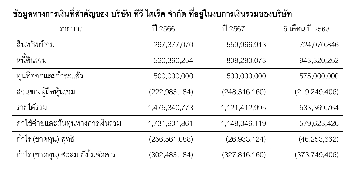 ทำให้ตลอดระยะยะเวลาการดำเนินธุรกิจที่ผ่านมา บริษัท ทีวี ไดเร็ค จำกัด และบริษัท เอ็กซ์ เพรลโซ่ (ไทย) จำกัด มีผลการดำเนินงานไม่เป็นไปตามแผนที่วางไว้ และมีผลการดำเนินงานขาดทุนอย่างต่อเนื่องโดยมีผลขาดทุนสะสม ณ วันที่ 30 มิถุนายน 2568 จำนวน 373.75 ล้านบาท และ จำนวน 113.17 ล้านบาท ตามลำดับ