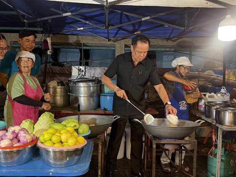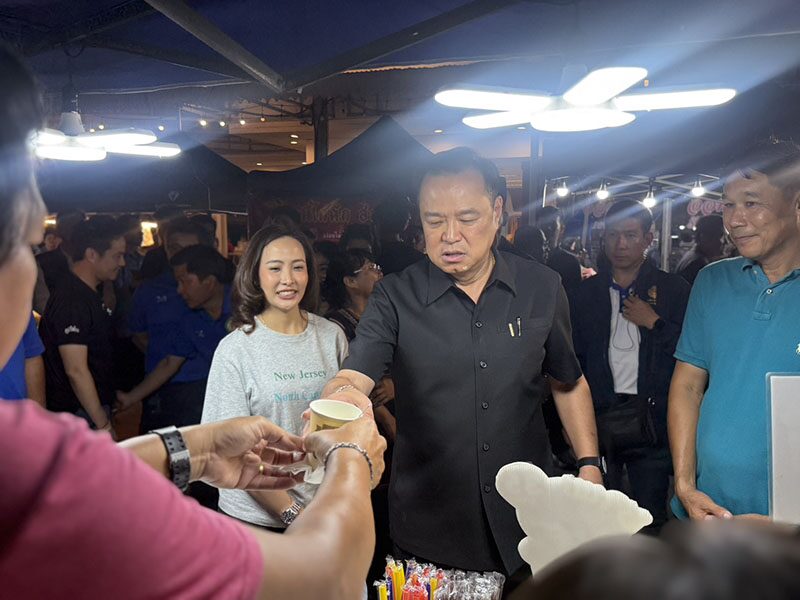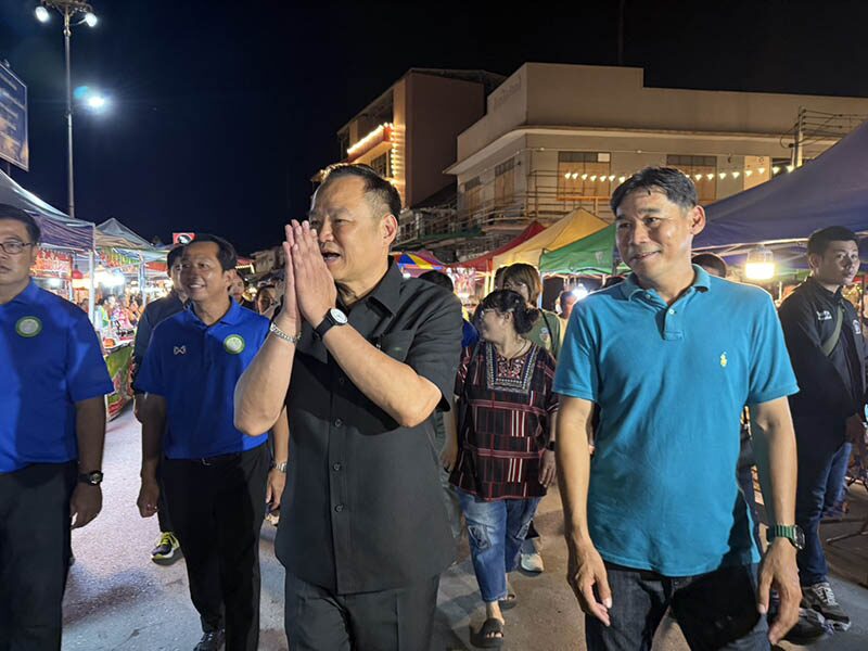 อนุทิน พาน้องจ๋า ลุยถนนคนเดินสิงห์บุรี โชว์ผัดข้าวคลุกกะปิ ร้องเพลง บ้านเกิดเมืองนอน ปลุกใจทหาร