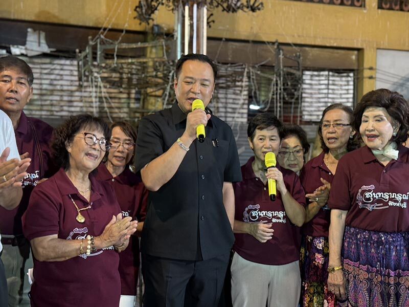 อนุทิน พาน้องจ๋า ลุยถนนคนเดินสิงห์บุรี สะบัดตะหลิว ผัดข้าวคลุกกะปิ ควงไมค์ร้องเพลง บ้านเกิดเมืองนอน ปลุกใจทหาร ชายแดนไทย-กัมพูชา