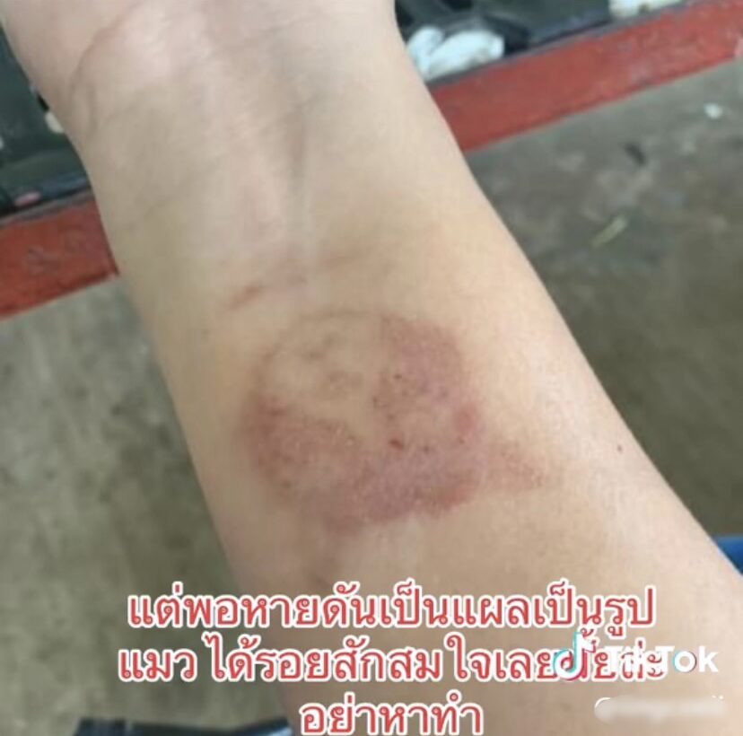 หลังปรึกษาแพทย์และเข้ารับการรักษา มีอาการดีขึ้น และรอยแผลเริ่มยุบแล้วทว่าก็ทิ้งรอยแผลเป็นรูปแมวเป็นรอยจางๆทิ้งไว้ ให้เตือนใจ