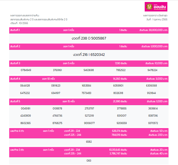 ตรวจผลสลากออมสินพิเศษ 5 ปี เดือนที่ 10/2566 งวดวันที่ 1 ตุลาคม 2566