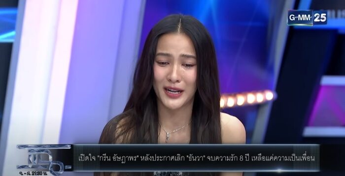ถามว่าปัญหาที่ทะเลาะกัน จากเรื่องเล็กน้อยกลายเป็นปัญหาใหญ่ กรีน ยอมรับว่า ธันวาเขาไปสายธุรกิจแล้ว ส่วนตัวหนู หนูยังชอบและรักการแสดง เล่นในหลายบทบาท เลยค่อยๆไปคนละทาง และพอทำงานในวงการก็มีคอนเทนต์ มีพีอาร์ ทำนู่นนี่แล้วธันวาเขาไม่ชอบ มีดีเทลเล็กๆน้อยๆตรงนี้ ที่กลายเป็นเรื่องใหญ่ได้ เช่นเรื่องถ่ายรูป ก็จะแบบไม่ได้อดทนที่จะรอกัน ผู้หญิงก็อาจจะอยากถ่ายเยอะ มันเล็กๆน้อยๆหมดเลย เริ่มจากครั้งที่ 1 , 2 , 3 โอเค ครั้งที่ 10 , 11 เราไม่ชวนเขาดีกว่า เลยเกิดระยะห่าง มันก็มีอีกเรื่องเล็กๆน้อยๆ แบบนี้