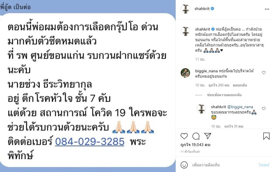 โดย ชาคริต แย้มนาม โพสต์ขอความช่วยเหลือดังกล่าวช่วยอู๊ด เป็นต่อ ด้วยว่า พ่อพี่อู๊ดเป็นต่อ … กำลังป่วยหนักต้องการเลือดกรุ๊ปโอด่วนครับ ใครอยู่ขอนแก่น หรือใกล้พื้นที่และสามารถช่วยเหลือได้รบกวนด้วยนะครับ..อนุโมทนาสาธุครับ ทั้งนี้มีคนเข้ามาคอมเมนต์ด้วยว่า พรุ่งนี้ผมไปบริจาคให้ครับผมอยู่ขอนแก่น หนุ่มชาคริตก็คอมเมนต์ขอบคุณมากๆเลยนะครับ