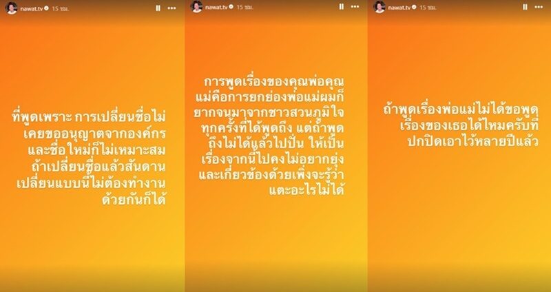 ล่าสุด บอส ณวัฒน์ โพสต์ฟาดรัวๆ ถึงเรื่องนี้ว่า “ที่พูดเพราะการเปลี่ยนชื่อไม่เคยขออนุญาตจากองค์กร และชื่อใหม่ก็ไม่เหมาะสม ถ้าเปลี่ยนชื่อแล้วสันดานเปลี่ยนแบบนี้ไม่ต้องทำงานด้วยกันก็ได้”