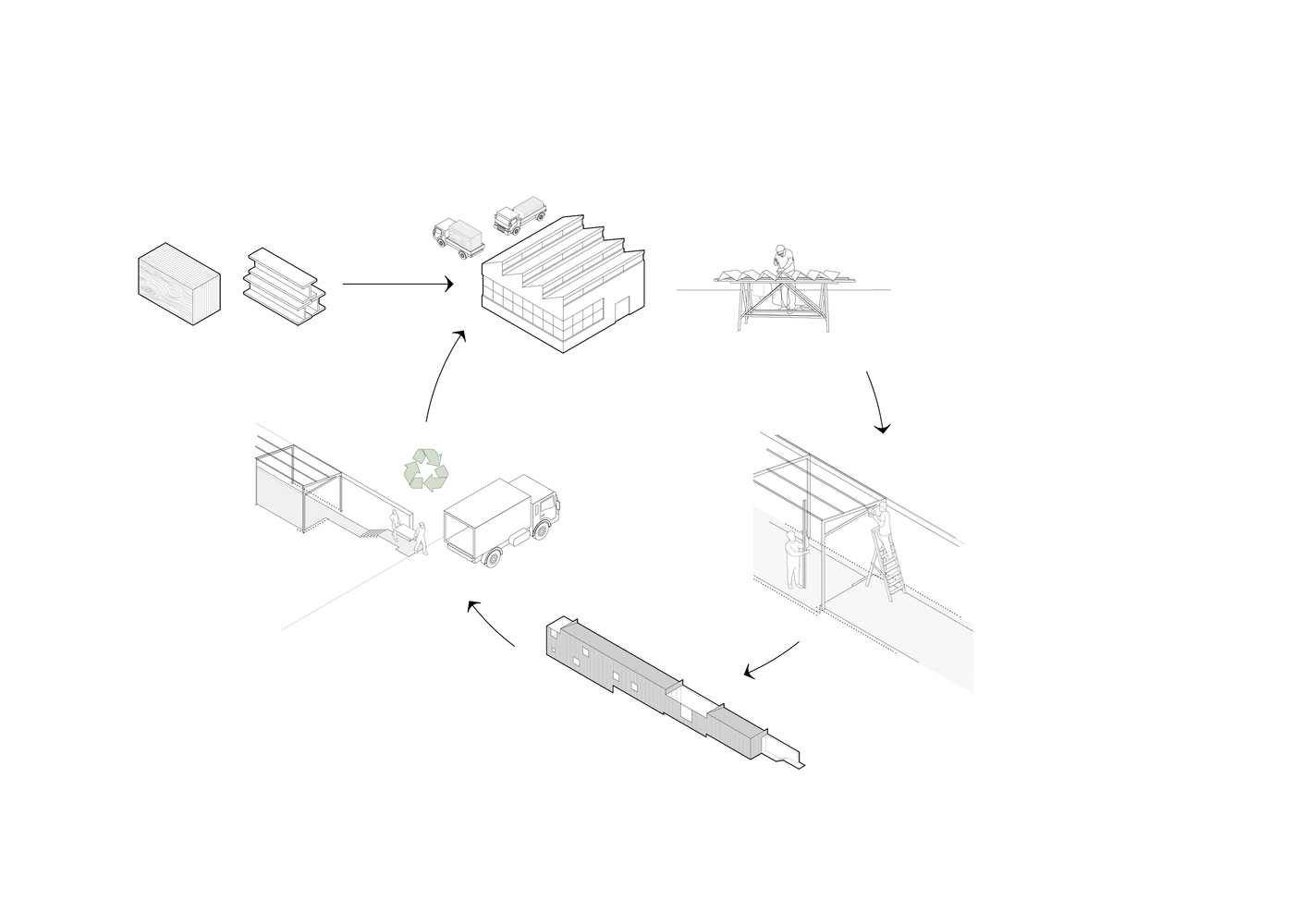 นวัตกรรมการก่อสร้างของโครงการนี้ถือว่าล้ำสมัยมาก การใช้ระบบชิ้นส่วนสำเร็จรูปที่ประกอบง่าย ไม่ต้องใช้กาวหรือสกรู และสามารถรีไซเคิลได้ ถือเป็นการปฏิวัติวงการก่อสร้าง และที่น่าประทับใจไปกว่านั้นคือทั้งหมดนี้ดำเนินการโดยช่างฝีมือเพียงสองคน