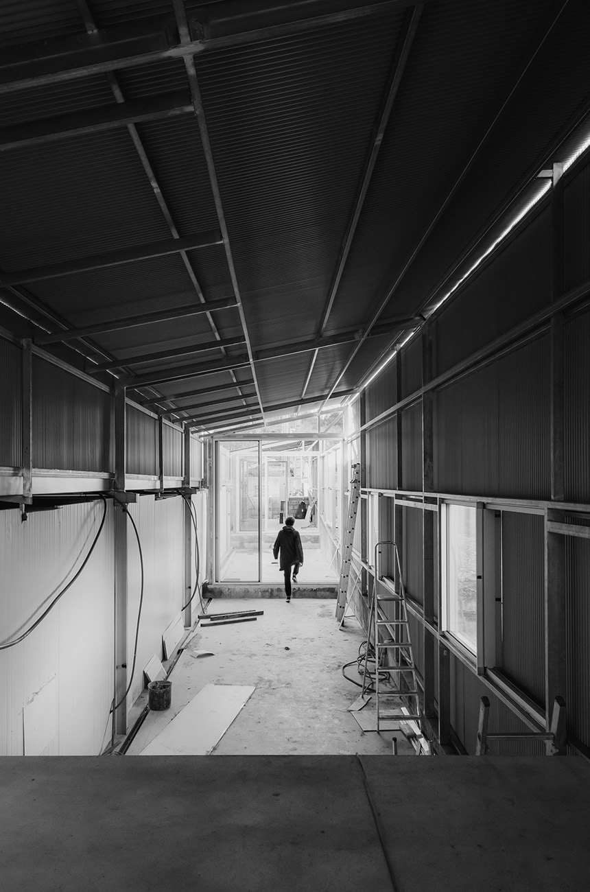 สิ่งที่น่าทึ่งที่สุดคือการผสมผสานความเก่าและใหม่เข้าด้วยกัน โดยแบ่งการพัฒนาเป็นสองส่วน ส่วนแรกคือการปรับปรุงโกดังเดิม จัดสรรพื้นที่ใหม่อย่างชาญฉลาด ทั้งพื้นที่เทคนิค การผลิต และพื้นที่พักผ่อน พร้อมเพิ่มระเบียงโลหะที่ทั้งสวยงามและใช้งานได้จริง
