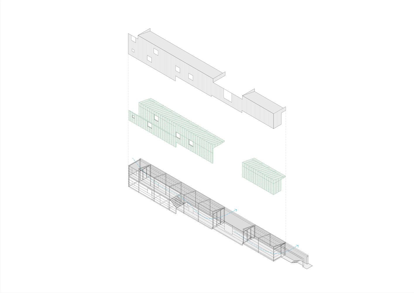 ส่วนที่สองที่ถือว่าเป็นไฮไลท์ของโครงการคือการสร้างอาคารสำนักงานใหม่ในพื้นที่แคบยาว 3 x 50 เมตร ที่น่าสนใจคือการออกแบบลานโล่งตลอดแนวอาคาร ซึ่งไม่เพียงช่วยประหยัดพลังงาน แต่ยังสร้างบรรยากาศการทำงานที่สดชื่น เป็นธรรมชาติ