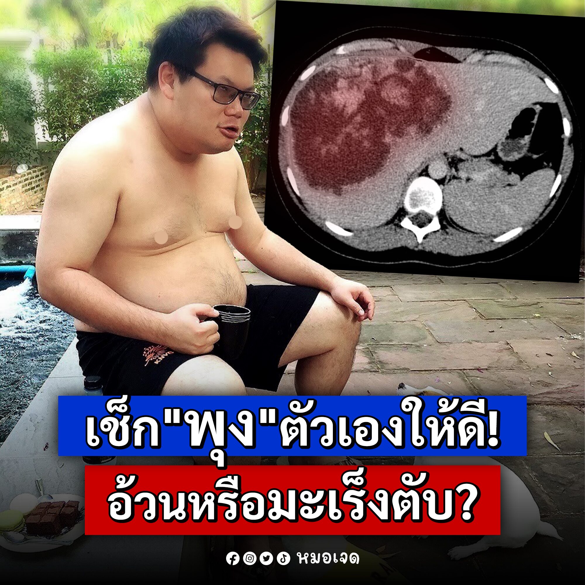 อ่านข่าวต้นฉบับได้ที่ : หมอเจด เผย 6 อาการ เช็กพุงตัวเองให้ดี อ้วนหรือมะเร็งตับ?