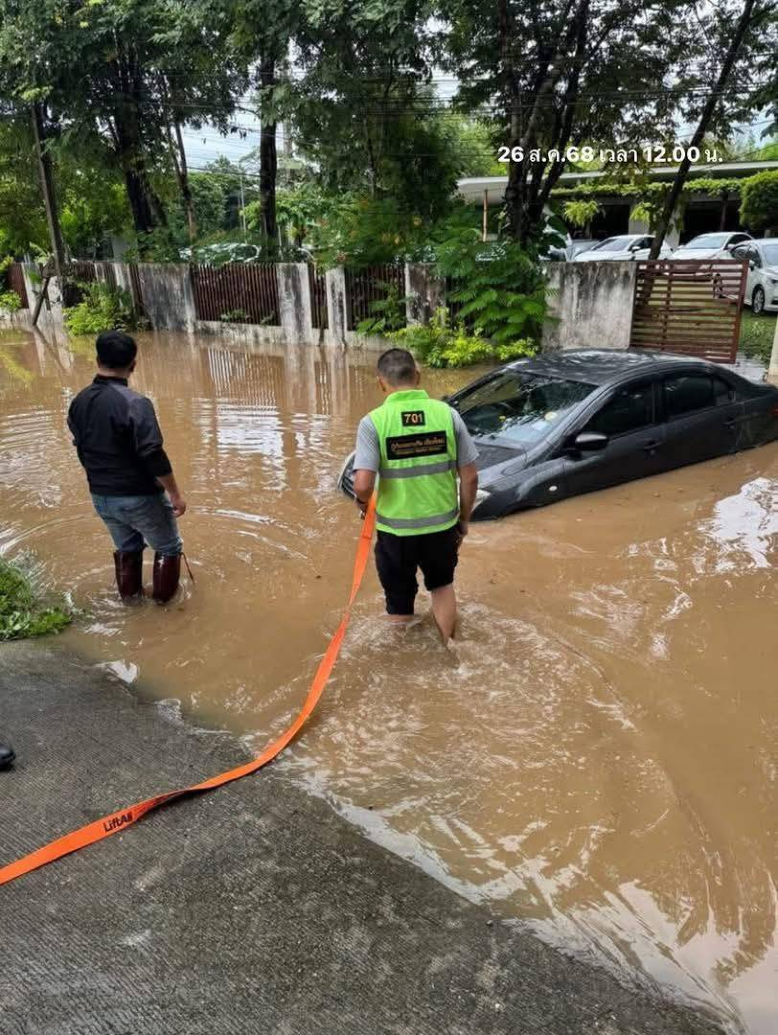 ฝนถล่มเชียงใหม่ น้ำท่วมขังหน้าสนามบิน-วัดพระสิงห์ เตือนรถเล็กใช้ทางระวัง