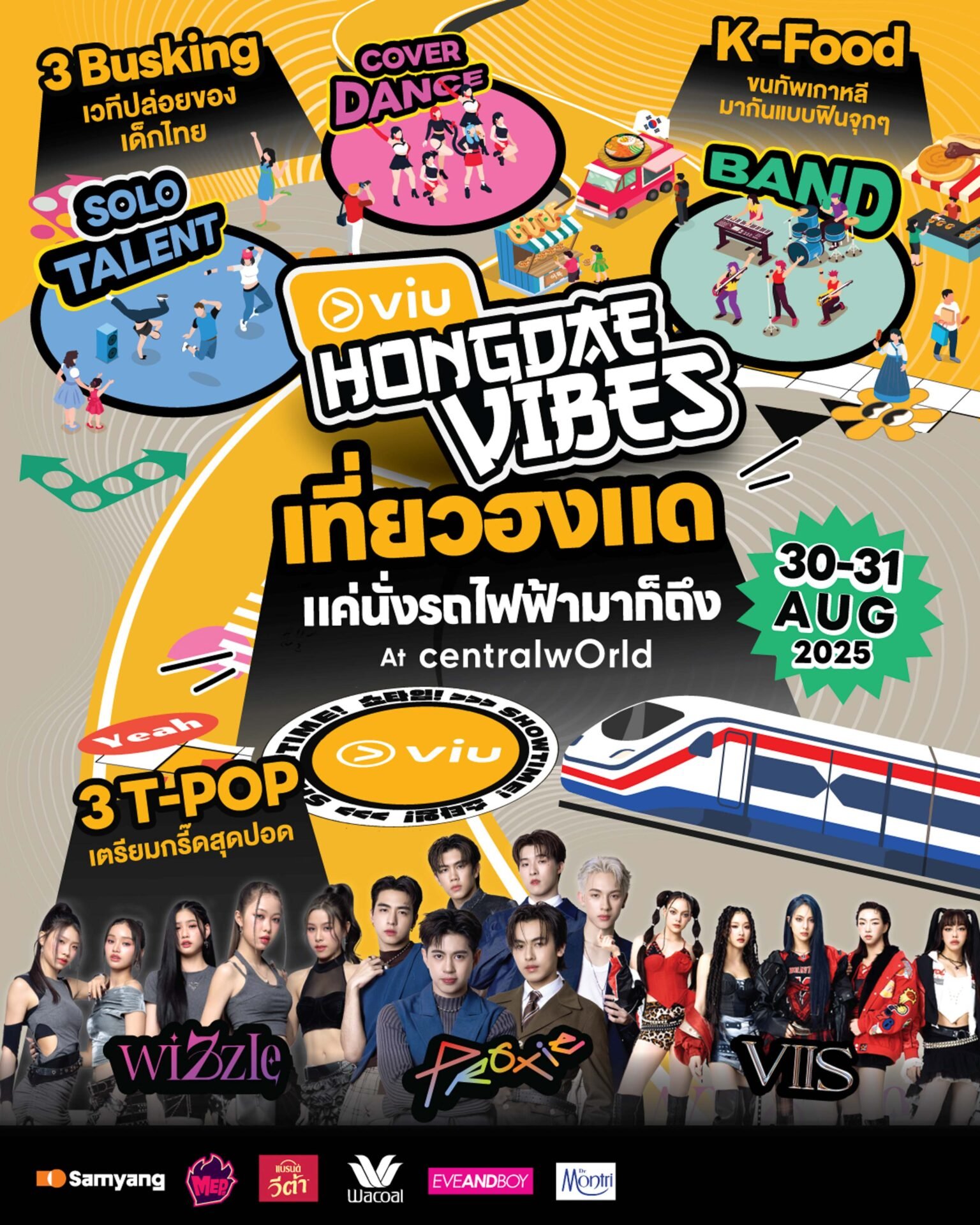 โดยภายในงาน Viu Hongdae Vibes เตรียมพบกับประสบการณ์แบบเกาหลีจ๋า ที่ยกบรรยากาศของย่านฮงแดมาไว้ใจกลางกรุงเทพฯ อย่างแท้จริง! เดินทางสะดวกแค่นั่งรถไฟฟ้า BTS ก็มาถึงลานหน้าเซ็นทรัลเวิลด์ได้ง่ายๆ และหนึ่งในไฮไลต์สำคัญที่แฟน K-POP ไม่ควรพลาด คือการมาเยือนของทีม Scout กว่า 10 ค่ายดังที่บินตรงมาจากเกาหลีใต้ เพื่อมาร่วมสอดส่องหาดาวรุ่งคนใหม่ของวงการ K-POP ซึ่งอาจเป็นจุดเริ่มต้นของความฝันบนเวทีเกาหลีระดับโลก