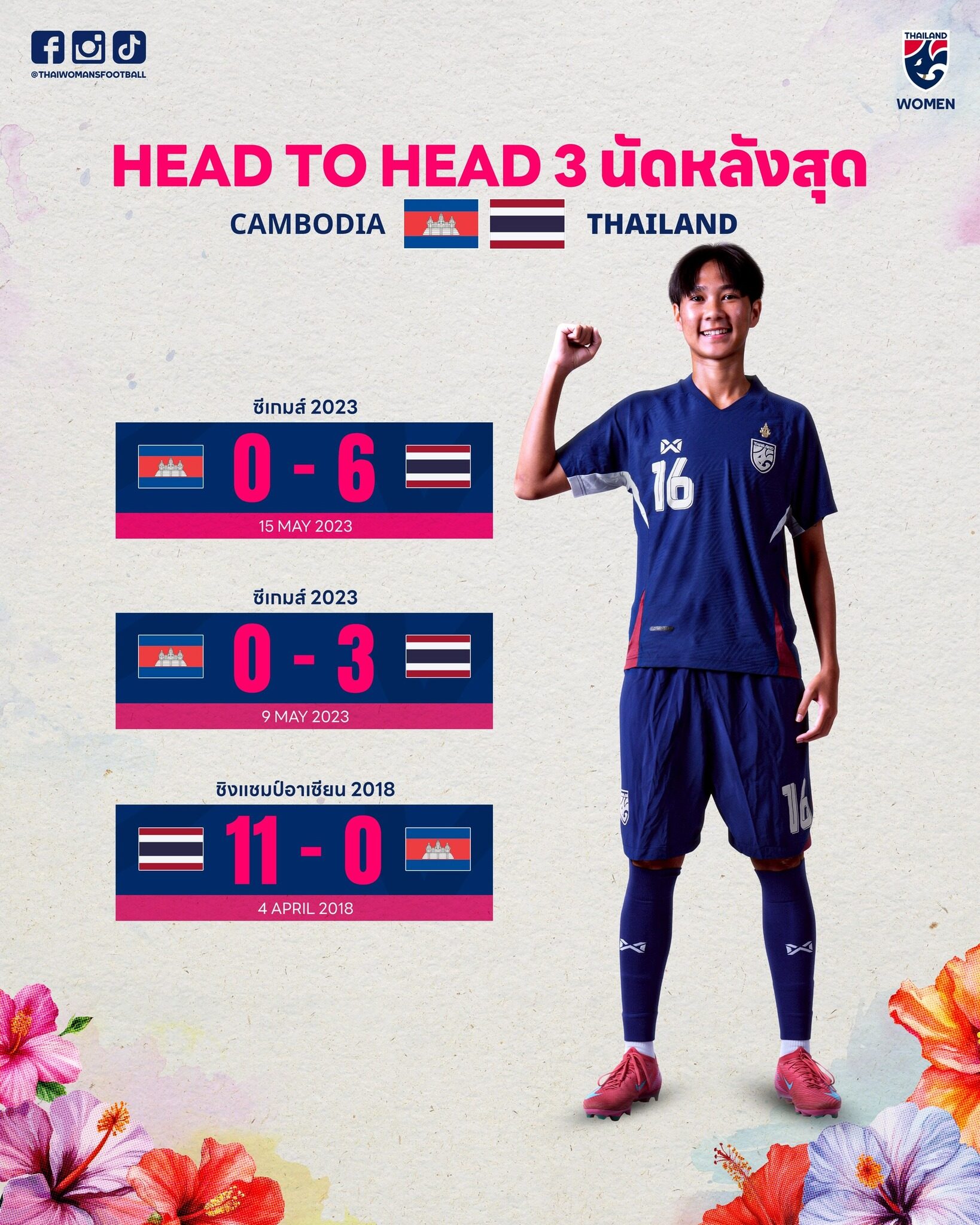 ทีมชาติไทย ลงสนามพบ กัมพูชา วันนี้ เวลา 16.30 น. ตามเวลาประเทศไทย จากสถิติการพบกัน 5 นัดหลังสุด ระหว่าง ฟุตบอลหญิงทีมชาติไทย กับ ทีมชาติกัมพูชา เราเป็นฝ่ายเอาชนะได้ทั้ง 3 เกมที่พบกัน