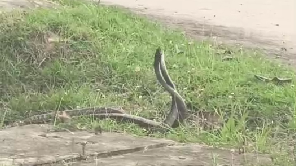 พอมองดูดีๆพบว่าเป็นงูกำลังพลอดรักกันอยู่ทางเข้าที่ทำงาน ตอนแรกตนตกใจเลยไม่กล้าขับรถเข้าไปตรงบริเวณประตู และได้หยิบมือถือมาถ่ายคลิป ซึ่งตั้งแต่เกิดมายังไม่เคยพบเห็น จึงคิดว่าเป็นเรื่องแปลก และมีความเชื่อว่างูตัวนี้จะต้องมาให้โชคอย่างแน่นอน