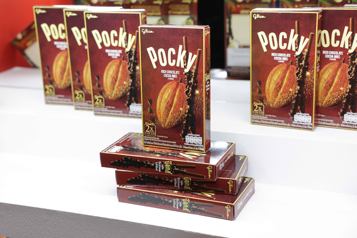 สำหรับ “ป๊อกกี้ ริชช็อกโกแลต โกโก้นิบส์” โดดเด่นด้วยความเข้มข้นจากช็อกโกแลตบนแท่งบิสกิตโฮลวีตเคลือบครีมหนา 2 ชั้น กับครีมช็อกโกแลตสูตรพิเศษเข้มข้น และมีปริมาณมากกว่าสูตรเดิม 2 เท่า ทำให้ผู้บริโภคเข้าถึงรสช็อกโกแลตได้อย่างเต็มคำ พร้อมโกโก้นิบส์เต็มๆแท่ง และยังเพิ่มเทกเจอร์ความอร่อยด้วยชิ้นคุกกี้กรุบกรอบ ตอบโจทย์ผู้ที่ชื่นชอบการทานช็อกโกแลตที่อร่อยและสนุก