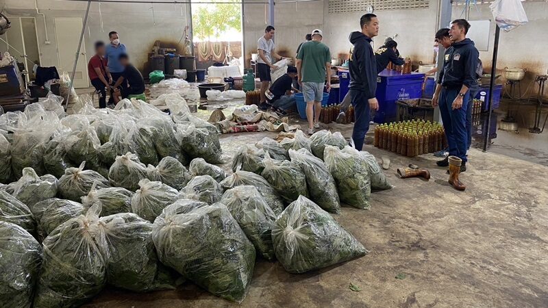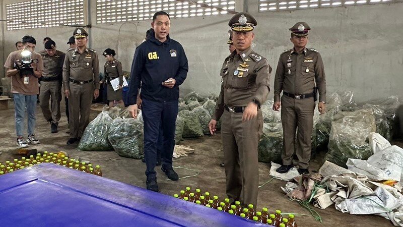 สภาพสุดยี้สกปรก ตำรวจ กก.ดส. บุกทลายโรงงานผลิตน้ำใบกระท่อม ส่งขายริมถนนย่านหัวหมาก-รามคำแหง จับ 2 พม่ามือต้ม ซัดเจ้าของเป็นคนใต้