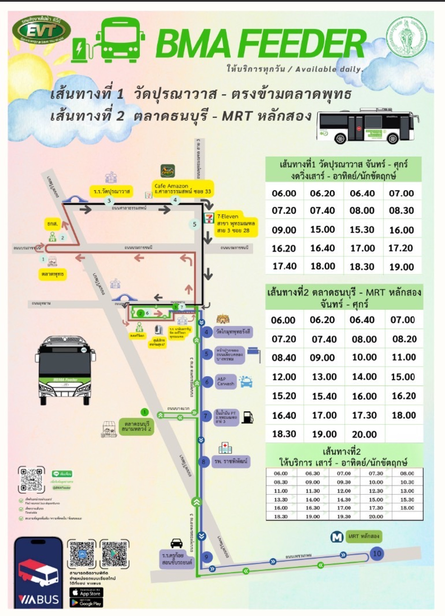วันที่ 23 มิ.ย.68 ที่ศาลาว่าการ กทม. นายเอกวรัญญู อัมระปาล โฆษกของกรุงเทพมหานคร เปิดเผยถึงโครงการ BMA Feeder ว่า ปัจจุบันกรุงเทพมหานครให้บริการ BMA Feeder จำนวน 2 เส้นทาง ได้แก่ 1.เส้นทาง วัดปุรณาวาส - ตรงข้ามสะพานพุทธ ให้บริการวันจันทร์-วันศุกร์ ระหว่างเวลา 06.00-20.00 น. 2.เส้นทาง ตลาดธนบุรี - MRT หลักสอง ให้บริการทุกวันระหว่างเวลา 06.00-20.00 น. โดยเปิดให้บริการตั้งแต่วันที่ 9 ธ.ค.67 และมีกำหนดจะเปิดให้บริการเพิ่มเติมอีก 5 เส้นทาง ในวันที่ 1 ก.ค.68 ประกอบด้วย 1.เส้นทาง ดินแดง - BTS สนามเป้า ให้บริการทุกวันระหว่างเวลา 06.00-20.00 น. 2.เส้นทาง MRT บางขุนนนท์ - 4 ตลาดน้ำตลิ่งชัน ให้บริการเฉพาะวันเสาร์ วันอาทิตย์ และวันหยุดนักขัตฤกษ์ เวลา 09.00-17.30 น. 3.เส้นทาง ถ.สามเสน เชื่อมต่อฝั่งธนบุรี (ตั้งฮั่วเส็ง) ให้บริการวันจันทร์-วันศุกร์ ระหว่างเวลา 06.00-19.00 น. 4.เส้นทาง ชุมชนเคหะร่มเกล้า - ARL ลาดกระบัง ให้บริการทุกวันระหว่างเวลา 06.00-20.00 น. และ 5. เส้นทาง พิพิธภัณฑ์เด็กฯ (จตุจักร) - BTS หมอชิต ให้บริการเฉพาะวันเสาร์ วันอาทิตย์ และวันหยุดนักขัตฤกษ์ เวลา 09.00-17.30 น.