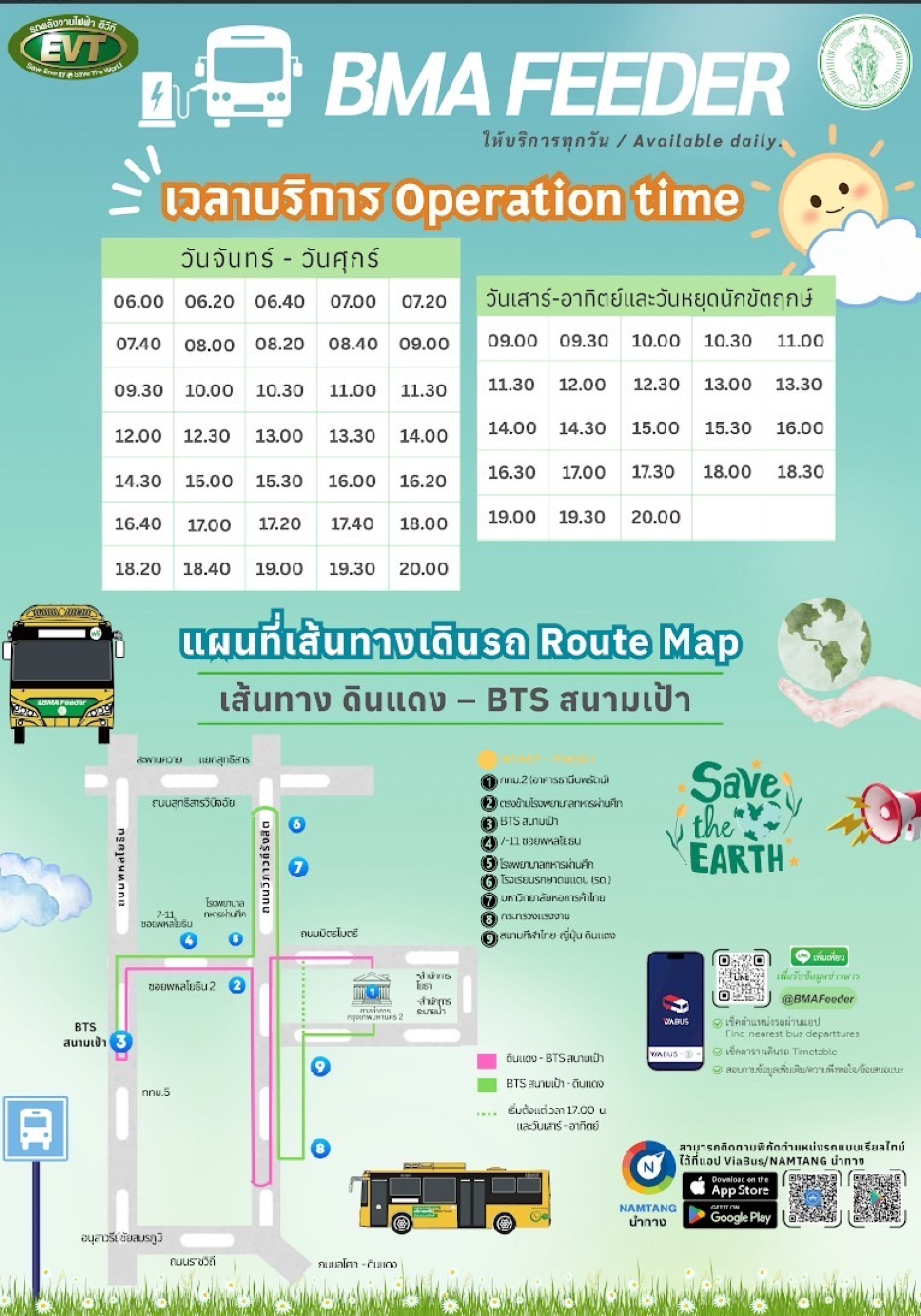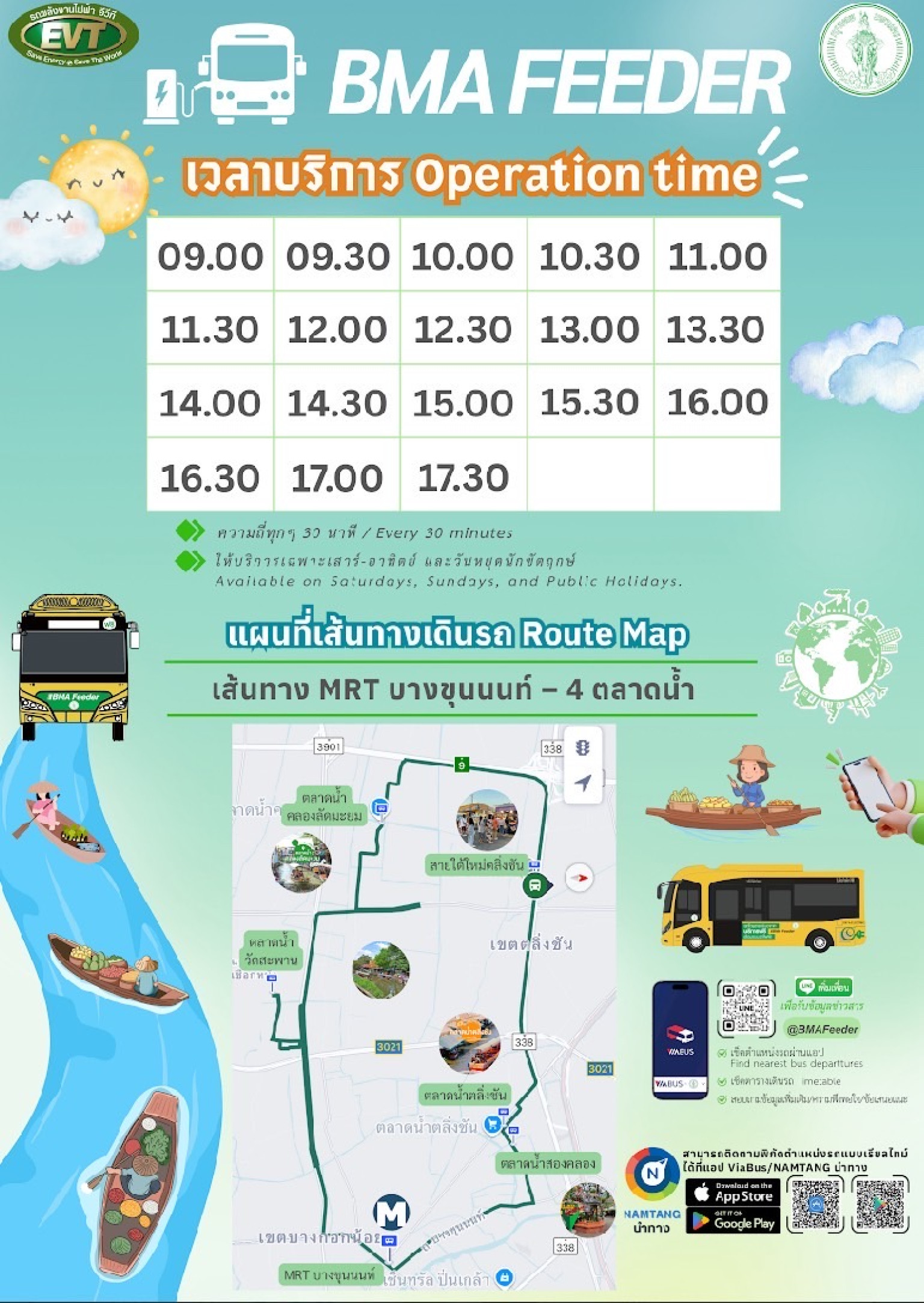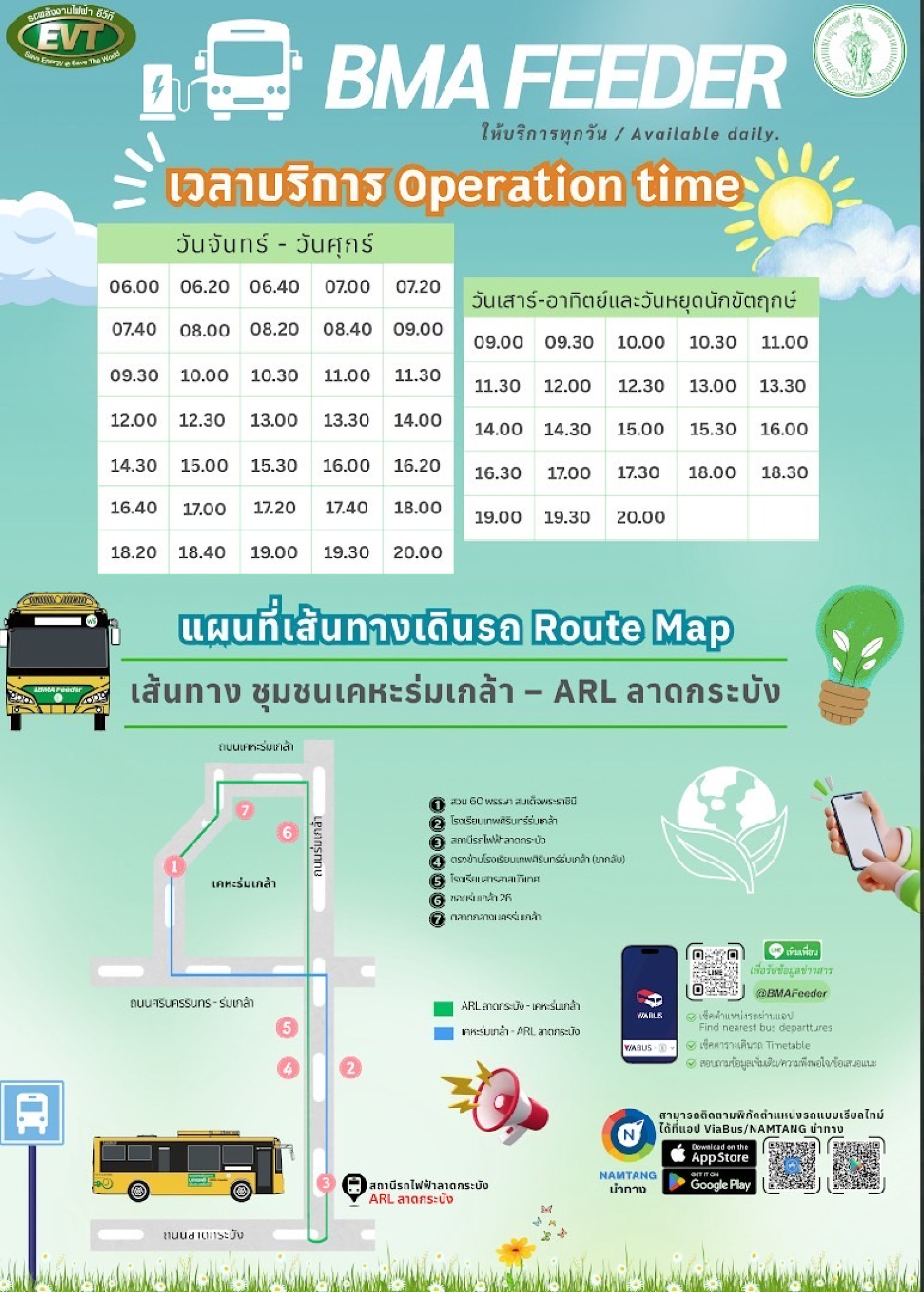 ทั้งนี้ กรุงเทพมหานครดำเนินโครงการให้บริการนำส่งผู้โดยสารเข้าสู่ระบบขนส่งทางราง โดยรถเวียน (Shuttle bus) ภายใต้ชื่อ BMA Feeder โดยใช้รถพลังงานไฟฟ้า เพื่อส่งเสริมให้ประชาชนหันมาใช้ระบบขนส่งสาธารณะ ลดการใช้รถยนต์ส่วนบุคคล ลดปริมาณมลพิษทางอากาศ และบรรเทาปัญหาการจราจร
