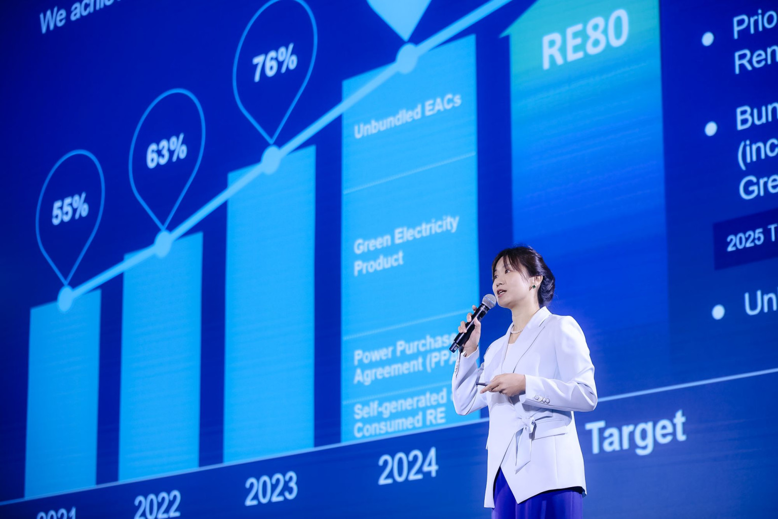 คุณโมน่า หยาง ผู้จัดการแผนกความยั่งยืนองค์กร บริษัท เดลต้า อีเลคโทรนิคส์ อิงค์ นำเสนอความก้าวหน้าล่าสุดด้าน ESG ของบริษัท โดยในปี 2567 เดลต้าบรรลุอัตราการใช้พลังงานหมุนเวียนสูงถึง 84% ซึ่งสูงกว่าเป้าหมาย RE80 ที่ตั้งไว้ล่วงหน้า 1 ปี อีกทั้งยังสามารถลดการปล่อยก๊าซเรือนกระจกในขอบเขตที่ 1 และ 2 ได้ถึง 53.6% ระหว่างปี 2564 ถึง 2567 นอกจากนี้ คุณโมน่า หยาง ยังได้นำเสนอแนวทางการดำเนินงานของเดลต้าในการกำหนดราคาคาร์บอนภายใน (Internal Carbon Pricing: ICP) ที่ 300 ดอลลาร์สหรัฐฯ ต่อการปล่อยคาร์บอนไดออกไซด์เทียบเท่า (CO₂e) หนึ่งตัน ซึ่งเป็นกลไกสำคัญในการจัดสรรงบประมาณสำหรับโครงการอนุรักษ์พลังงานและพัฒนาความยั่งยืนภายในองค์กร โดยโครงการเหล่านี้มีบทบาทสำคัญในการผลักดันเดลต้าให้บรรลุเป้าหมายการปล่อยคาร์บอนสุทธิเป็นศูนย์ตามแนวทางของโครงการ Science Based Targets initiative (SBTi)