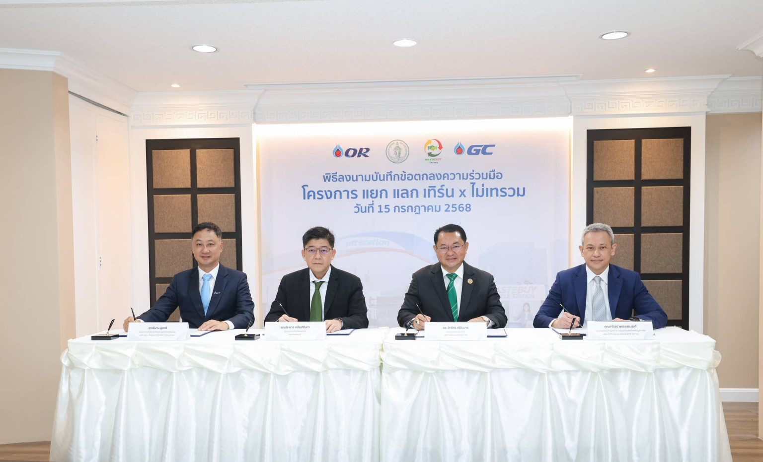 วันที่ 15 กรกฎาคม 2568 มูลนิธิมือวิเศษ และ พีทีที สเตชั่น โดย บริษัท ปตท. นํ้ามันและการค้าปลีก จำกัด (มหาชน) หรือ OR, บริษัท เวสท์บาย เดลิเวอรี่ จำกัด และ GC YOUเทิร์น แพลตฟอร์มบริหารจัดการพลาสติกใช้แล้ว โดย บริษัท พีทีที โกลบอล เคมิคอล จำกัด (มหาชน) หรือ GC ได้ร่วมลงนามบันทึกข้อตกลงความร่วมมือ (MOU) เดินหน้าโครงการ “แยก แลก เทิร์น x ไม่เทรวม” ขยายผลการจัดการขยะต้นทาง สู่การสร้างระบบการแยกขยะอย่างครบวงจรที่เชื่อมโยงระหว่างภาครัฐ ภาคเอกชน และประชาชน จัดตั้ง “Recycle Station” นำร่องสร้างต้นแบบการจัดการขยะต้นทางอย่างมีประสิทธิภาพ เพื่อเป้าหมายร่วมกันด้านสิ่งแวดล้อมและเศรษฐกิจหมุนเวียน (Circular Economy)