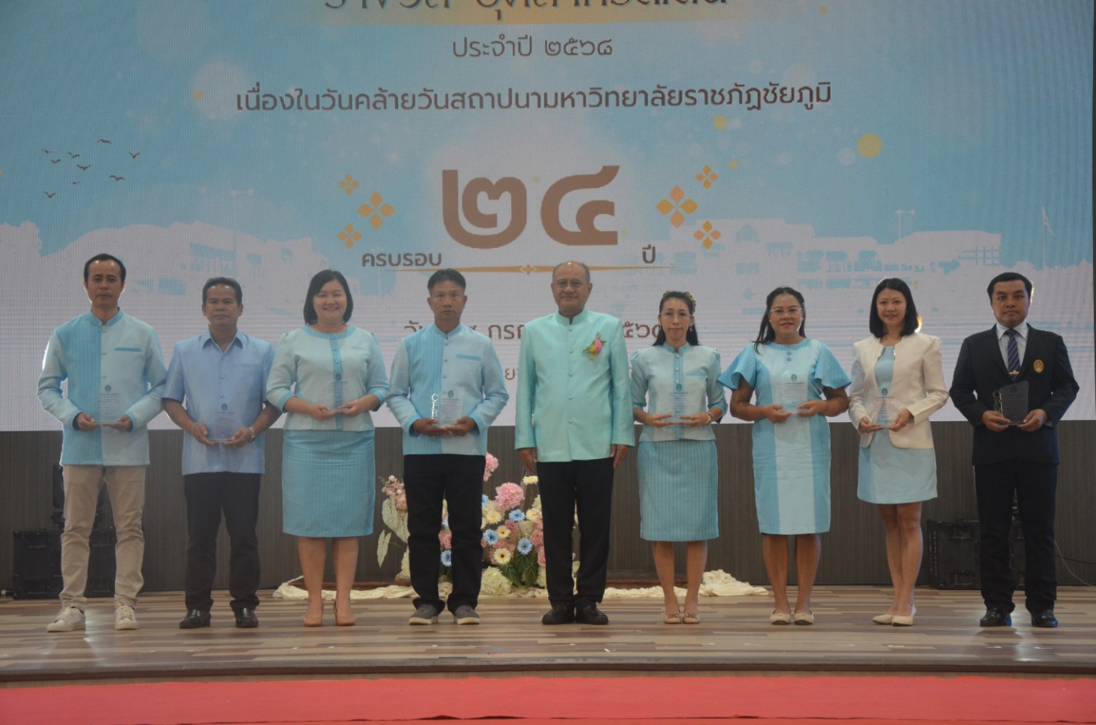 รางวัลยกย่องเชิดชูเกียรติบุคลากรที่ปฏิบัติหน้าที่จนมีผลงานดีเด่น และเป็นประโยชน์ต่อมหาวิทยาลัยฯ ชุมชน ท้องถิ่น และประเทศชาติ รางวัล "บุคลากร ดีเด่น" ประจำปีอีกจำนวน 30 รางวัล โดย นายกสภามหาวิทยาลัยราชภัฎชัยภูมิ ซึ่งรางวัลยกย่องเชิดชูเกียรตินักวิจัย ที่สร้างผลงานดีเด่น และเป็นประโยชน์ต่อ มหาวิทยาลัยฯ ชุมชน ท้องถิ่น และประเทศชาติ รางวัล "นักวิจัยดีเด่น"ประจำปีอีกจำนวน 3 รางวัล รางวัลยกย่องเชิดชูเกียรติศิษย์เก่าที่สร้างผลงาน ชื่อเสียงดีเด่น และเป็นประโยชน์ต่อมหาวิทยาลัยฯ ชุมชน ท้องถิ่น และประเทศชาติ รางวัล "ศิษย์เก่าดีเด่น" จำนวน 16 รางวัล รางวัลยกย่องเชิดชูเกียรติสถานศึกษาส่งเสริมการศึกษาต่อระดับอุดมศึกษารางวัล "Top 10 Schools higher Education pathway" จำนวน 10 รางวัล