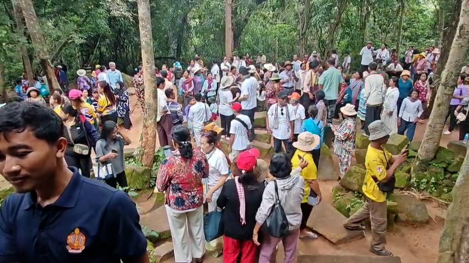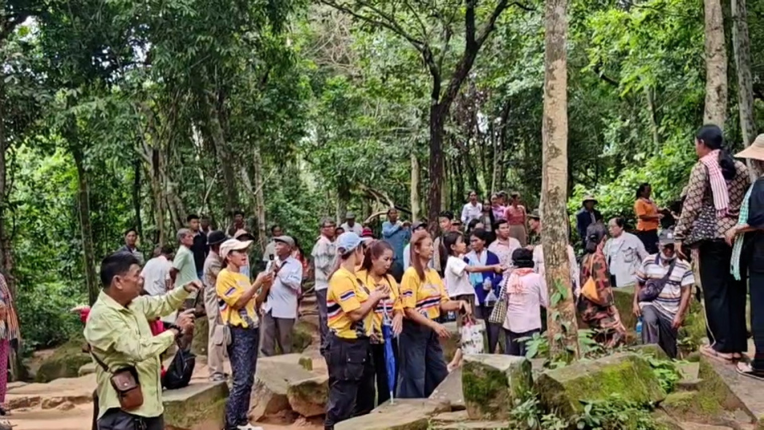 วันที่ 20 กรกฎาคม 2568 ผู้สื่อข่าวรายงาน ว่า มีทัวร์เขมร ของคณะหญิงกัมพูชา โมนิก้า รวมตัวกันเดินทางด้วยรถทัวร์ 23 คันจากกรุงพนมเปญ เพื่อมาเที่ยวปราสาทตาควาย ต.บักได อ.พนมดงรัก จ.สุรินทร์ ส่วนใหญ่ ใส่เสื้อสีขาวสกรีนอักษรเขมรหน้าหลังหลายร้อยคน คนเดินขึ้นมาที่ปราสาทตั้งแต่เวลา 09.00 น. โดยมีการทยอยขึ้นมาสลับสับเปลี่ยนกัน และมีชาวไทยใส่เสื้อเหลืองลายธงชาติขึ้นไปต้อนรับแต่ก็ไม่ได้มีการยั่วยุอะไร หลังจากนั้นเวลา 10.30 น ชาวเขมร ได้ทำพิธีสวดมนต์ พร้อมทั้งจุดดอกไม้ธูปเทียนกลางประสาทตาควาย โดยใช้เวลาสวดเราประมาณ 20 นาที แล้วกลุ่มดังกล่าวก็ลงไป ก่อนจะมีกลุ่มใหม่ขึ้นมาแทนสลับเปลี่ยนกันตลอดเวลาบางครั้งก็มีพระสงฆ์ขึ้นมาด้วยตลอดทั้งวัน จึงทำให้บรรยากาศบริเวณปราสาทตาควายหนาแน่นไปด้วยชาวกัมพูชา