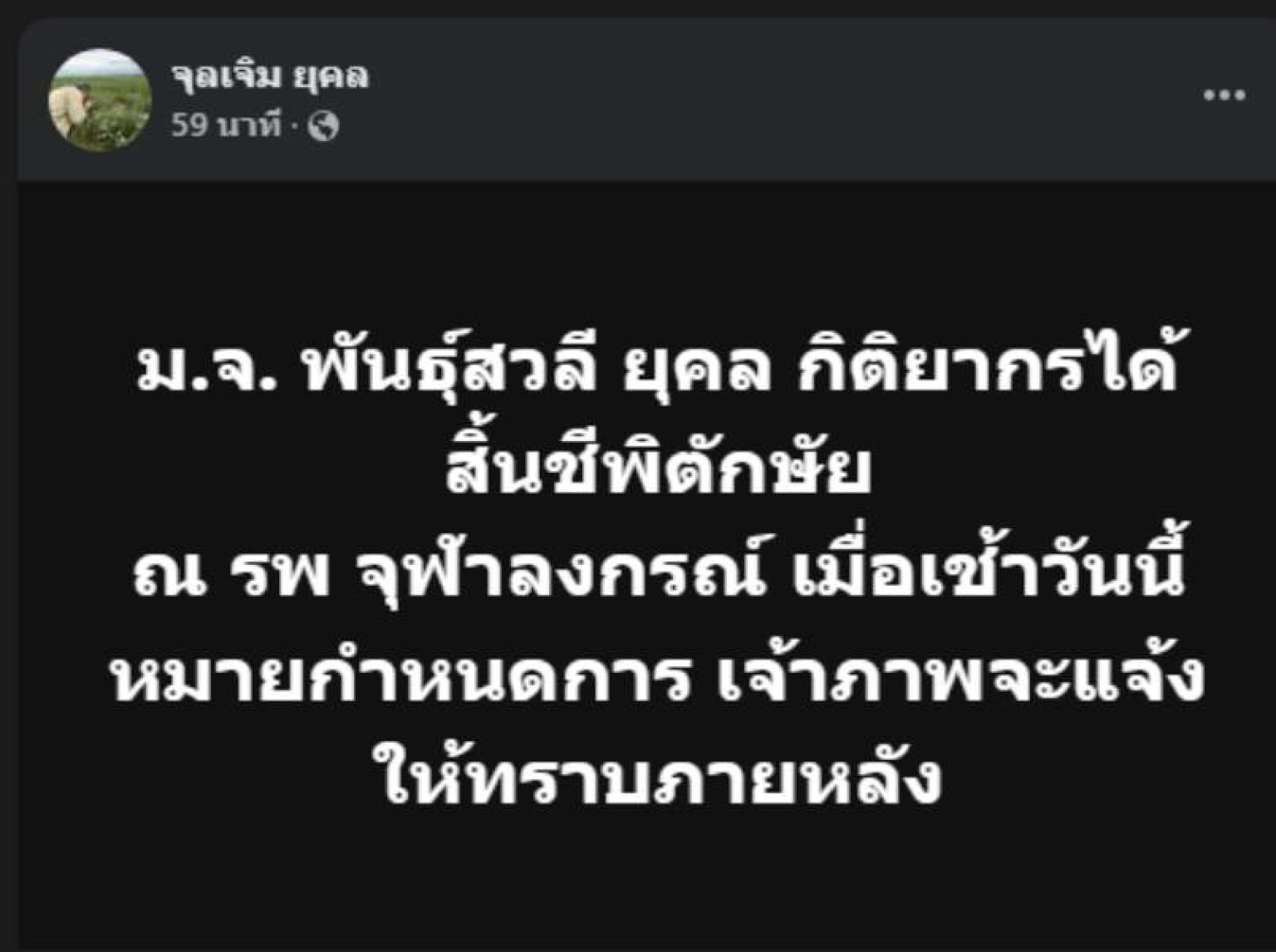 วันที่ 10 มิ.ย.68 พล.ต.หม่อมเจ้าจุลเจิม ยุคล โพสต์ข้อความผ่านเฟซบุ๊กส่วนตัว “จุลเจิม ยุคล” ระบุว่า…