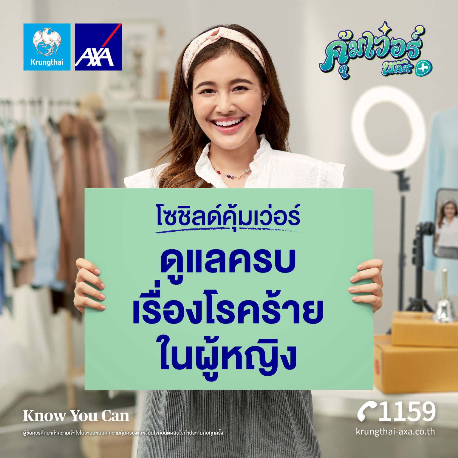บมจ.กรุงไทย-แอกซ่า ประกันชีวิต นำโดยคุณบุปผาวดี โอวรารินท์ ประธานเจ้าหน้าที่บริหาร ฝ่ายการตลาด ตอกย้ำจุดยืนผู้นำบริษัทประกันชีวิตและสุขภาพ เปิดตัวแคมเปญโฆษณา “โซชิลด์คุ้มเว่อร์” ภายใต้แคมเปญคุ้มเว่อร์ พลัส” เพื่อสนับสนุนให้ผู้หญิงไทยดูแลตัวเองและให้ความสำคัญกับระยะป้องกันโรคร้ายๆต่างที่อาจเกิดขึ้นได้ โดยดูแลครบเรื่องโรคร้ายในผู้หญิง อาทิ มะเร็งรังไข่ มะเร็งเต้านม มะเร็งปากมดลูก หมดกังวลหากตรวจพบโรคร้ายแรงเหมาจ่ายสูงถึง 3.5 ล้านบาทตลอดอายุสัญญา พร้อมชดเชยรายได้หากต้องนอนโรงพยาบาล หมดกังวลเรื่องการรักษาโรคร้าย ให้ชีวิตได้ไปต่อ ซึ่งแคมเปญโฆษณาดังกล่าวเป็นการต่อยอดจากแคมเปญ “ผู้หญิง ไม่ควรต้องเสี่ยง” เพื่อมอบความมั่นใจให้ผู้หญิงไทย ก้าวไปข้างหน้าได้อย่างมั่นใจ