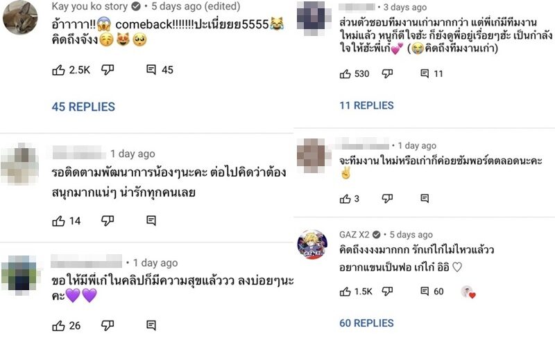 ขณะที่แฟนคลับอีกส่วนก็ยังให้กำลังใจทีมงานชุดใหม่ในการปรับตัวพร้อมรอติดตามผลงานต่อไป อาทิ ส่วนตัวชอบทีมงานเก่ามากกว่า แต่พี่เก๋มีทีมงานใหม่แล้ว หนูก็ดีใจฮะ ก็ยังดูพี่อยู่เรื่อยๆฮะ เป็นกำลังใจให้ฮะพี่เก๋ , ใจเย็นจ้าทุกคน น้องๆยังใหม่ไม่แปลกที่จะเกร็ง แต่ที่แปลกตาเราว่าการถ่ายภาพสีคลิปนี้ดูหมองๆอาจคิดไปเอง แต่เป็นกำลังใจให้ค่ะ รอติดตามต่อไปนะคะ เป็นต้น