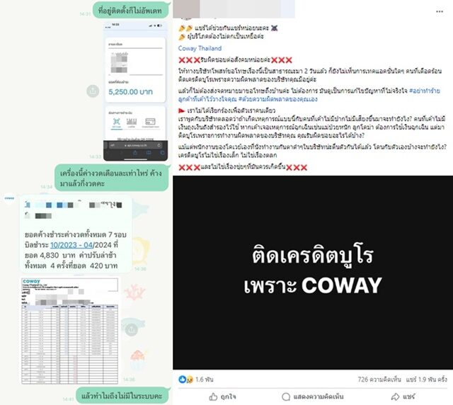 'Coway' ร่อนจดหมายแจง หลังลูกค้าติดเครดิตบูโร แบกหนี้สุดงง