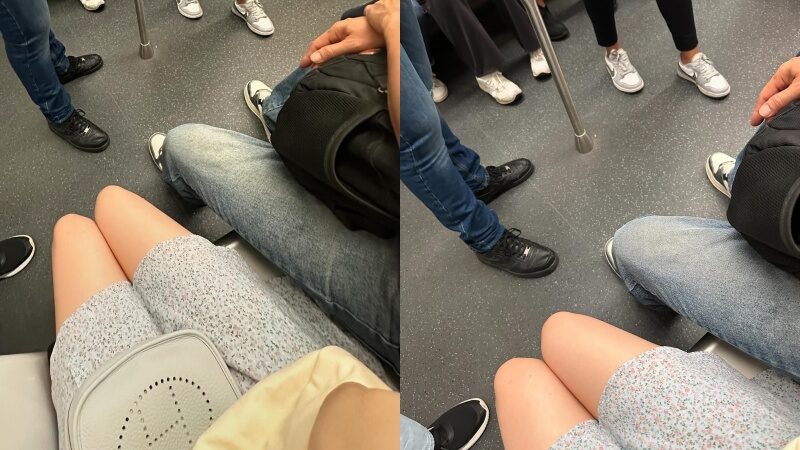 โดยเธอระบุว่า เธอเพิ่งขึ้นรถไฟใต้ดินและนั่งลง ซึ่งผู้โดยสารชายที่อยู่ข้าง ๆ เธอกางเท้ากว้างมากจนแตะต้นขาของเธอ ณ จุดหนึ่ง ถึงแม้ผู้โดยสารจะขยับเท้าเข้าหากันเล็กน้อย แต่เขาก็ยังกางขาอยู่ดี