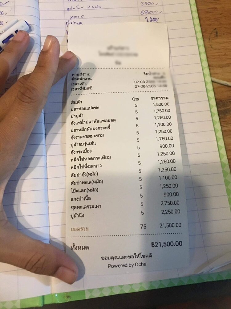 จากนั้นพุดคุยกันผ่านไลน์ ส่งเมนูอาหารไปให้เลือก ลูกค้าเลือกเมนูอาหารส่งกลับมา ราคาเมนูอาหารประมาณ 21,500 บาท ทางลูกค้าส่งสลิปการโอนเงินกลับมาให้ เราเช็คแล้วว่า เงินยังไม่เข้า บอกกับเราว่า ทางบริษัททำธุรกรรมหลายๆ ที่ เงินอาจจะเข้าช้ากว่าระบบ เราเริ่มมีความรู้สึกถึงความผิดปกติ