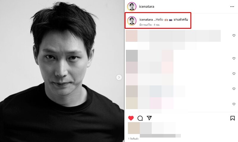 แต่ล่าสุดแฟนๆ ถึงกับดีใจน้ำตาไหลเลยทีเดียว เมื่อหนุ่มไอซ์ซึ กลับมาเล่นไอจีอีกครั้ง พร้อมเปิดบัญชีใหม่ชื่อว่า @icenatara โพสต์ภาพให้หายคิดถึงกันแบบรัวๆ พร้อมแคปชั่นว่า “…Hello มาแล้วครับ” และ “…มากับลูกๆ ⬛⬛” โดยมีคนเข้ามากดติดตามเป็นจำนวนมากถึงครึ่งแสนเพียงข้ามคืน