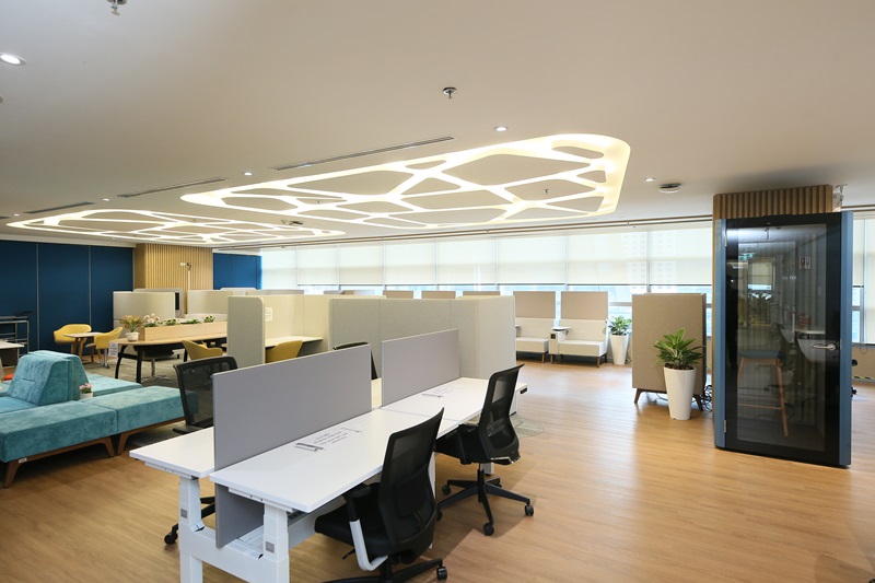 หลักๆ มีการดีไซน์ใหม่ ให้สอดรับกับการทำงานรูปแบบใหม่ ห้องทำงานเป็นเหมือน Co-Working Space ไม่มีที่นั่งตายตัว เพราะทุกคนไม่ได้เข้าทำงานพร้อมกัน ให้พนักงานมีส่วนช่วยในการออกแบบ เลือกเฟอร์นิเจอร์ เลือกเกมที่ใช้ในโซนพักผ่อน ตั้งชื่อห้องประชุม และเสริมเทคโนโลยีมากขึ้น หลักๆ แบ่งเป็น 5 โซน