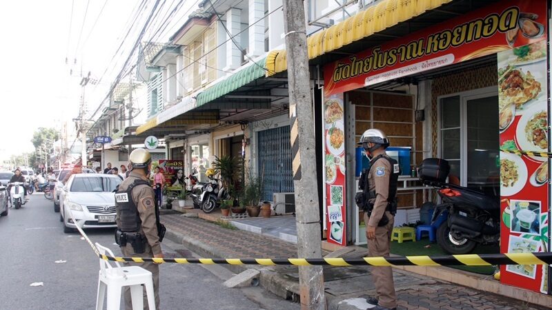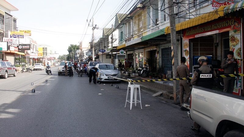 ที่เกิดเหตุเป็นตึกแถวอยู่ติดกันหลายหลังบริเวณหน้าร้านขายผัดไทยโบราณหอยทอด บนพื้นถนนพบปลอกกระสุนปืนและหัวกระสุนกระจายอยู่เกลื่อนถนน 9 ปลอก เจ้าหน้าที่จึงเก็บไว้เป็นหลักฐาน และยังมีกองเลือดของคนเจ็บที่พื้นถนนจำนวนมาก