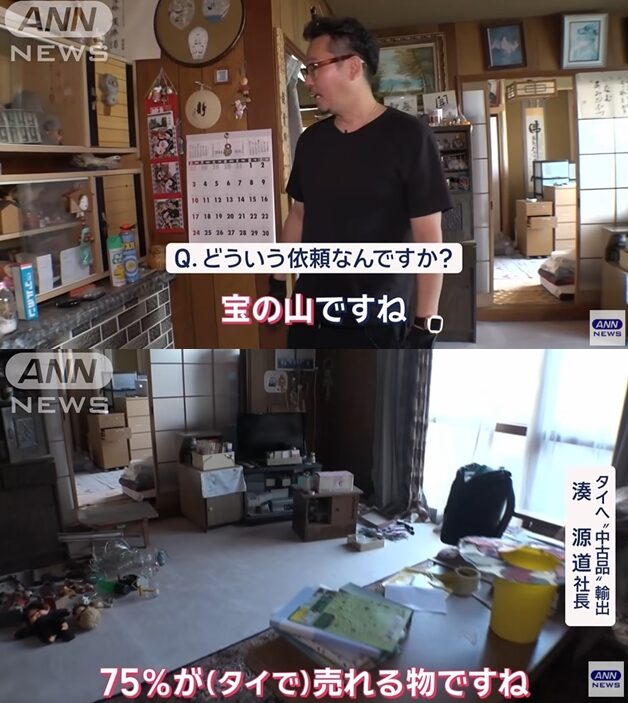 สำนักข่าว ANN NEWS ได้ทำสกู๊ปติดตามบริษัทรับเคลียร์บ้านผู้เสียชีวิต ซึ่งเกี่ยวข้องกับธุรกิจสินค้ามือ 2 ของญี่ปุ่นที่กำลังจะถูกส่งไปขายในไทย