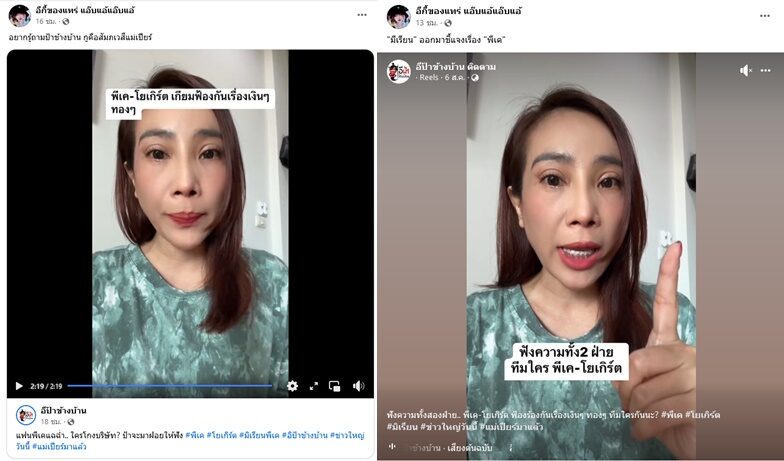 ออกมาแฉหลักฐานรัวๆ จนโยงว่าพาดพิงไปถึงใครไม่ได้นอกจากโยเกิร์ต อดีตภรรยา พีเค โดย มีเรียน แฟนใหม่ พีเค ปิยะวัฒน์ เคลื่อนไหวปกป้อง พีเค ที่โดนถล่มอยู่ฝ่ายเดียว หลังมีประเด็นไม่จ่ายเงิน โยเกิร์ต ทั้งที่ตอนแรกมีกระแสว่าไปปรึกษาทนายดัง เซ็นยกสมบัติยกบ้าน จ่ายดูแลเมียเก่ารายเดือนๆละแสน