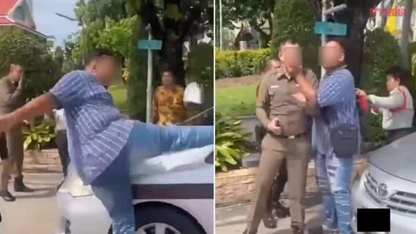 วันที่ 4 ต.ค.2567 ผู้สื่อข่าวรายงานว่า จากกรณีโชเซียลแชร์คลิปวิดีโอ เจ้าหน้าที่ตำรวจรายหนึ่งถูกชายฉกรรจ์ทำร้ายร่างกายชกต่อย เอามือค้ำคอ และใช้เท้าเตะกระจกมองข้างรถเจ้าหน้าที่ตำรวจได้รับความเสียหาย ส่วนเจ้าหน้าที่ตำรวจได้รับบาดเจ็บ เหตุเกิดเมื่อเวลา 15.18 น.ของวันที่ 2 ต.ค.ที่ผ่านมา