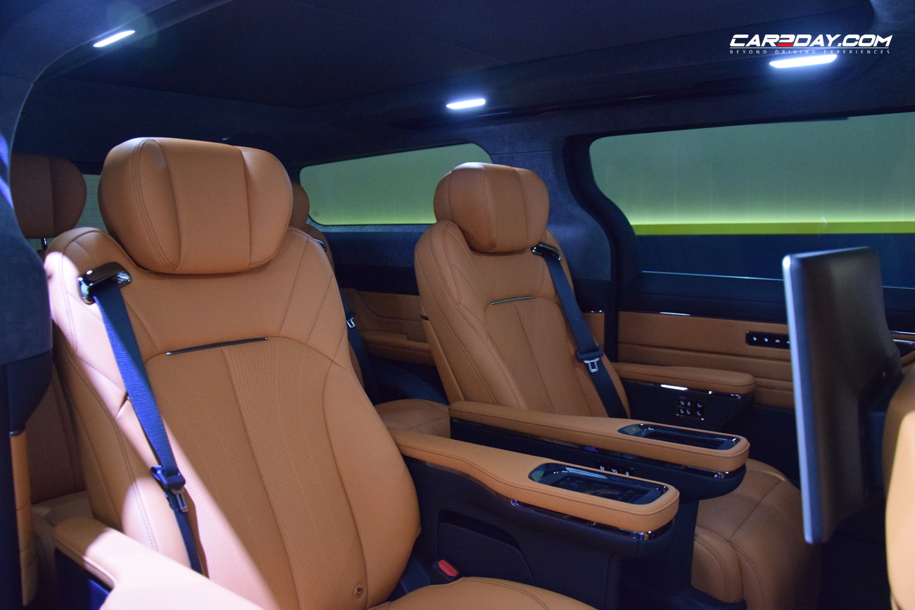 มีให้เลือกทั้งแบบ 3 ที่นั่ง 6 ที่นั่ง และ 8 ที่นั่ง 2+2+2+2 มาแบบ Captain Seat ในชุดเบาะนั่งตอนที่ 2 และ 3 เบาะนั่งตอนที่สี่หรือตอนสุดท้ายพับเก็บเพิ่มพื้นที่ในการขนของแบบฝังไว้ในหลุมแถมตอนที่สองหรือตอนที่สามสามารถเลื่อนเดินหน้าถอยหลังเบาะได้