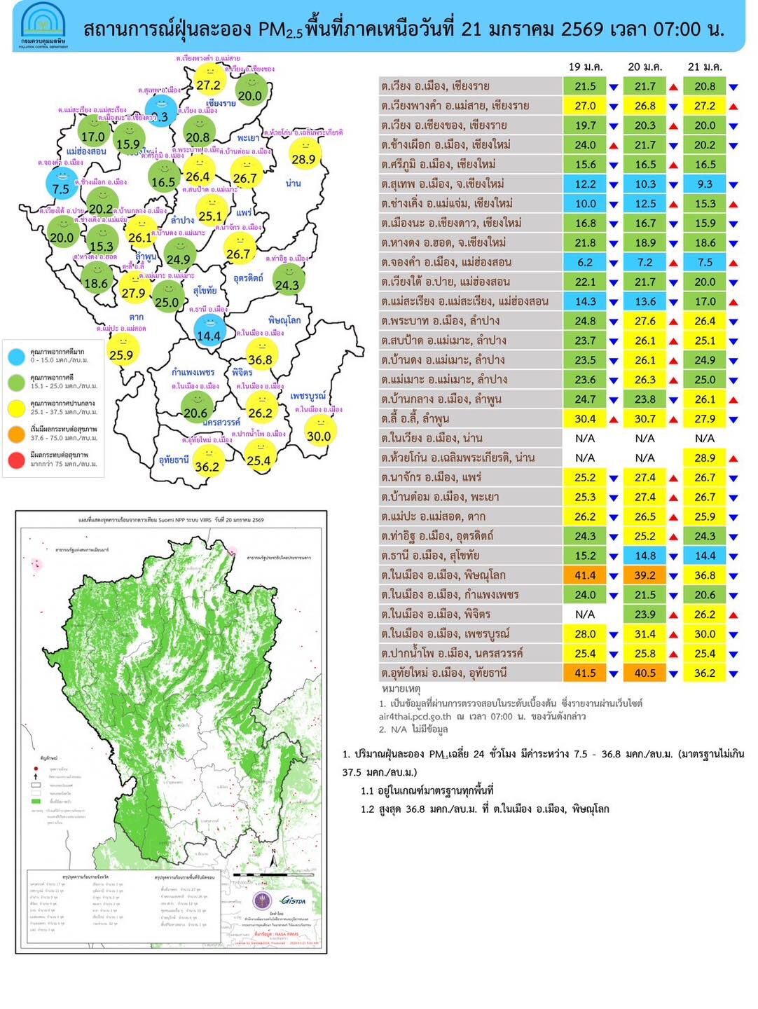 ภาคเหนือ : ภาพรวมอยู่ในเกณฑ์ดี ตรวจวัดได้ 7.5 - 36.8 มคก./ลบ.ม.