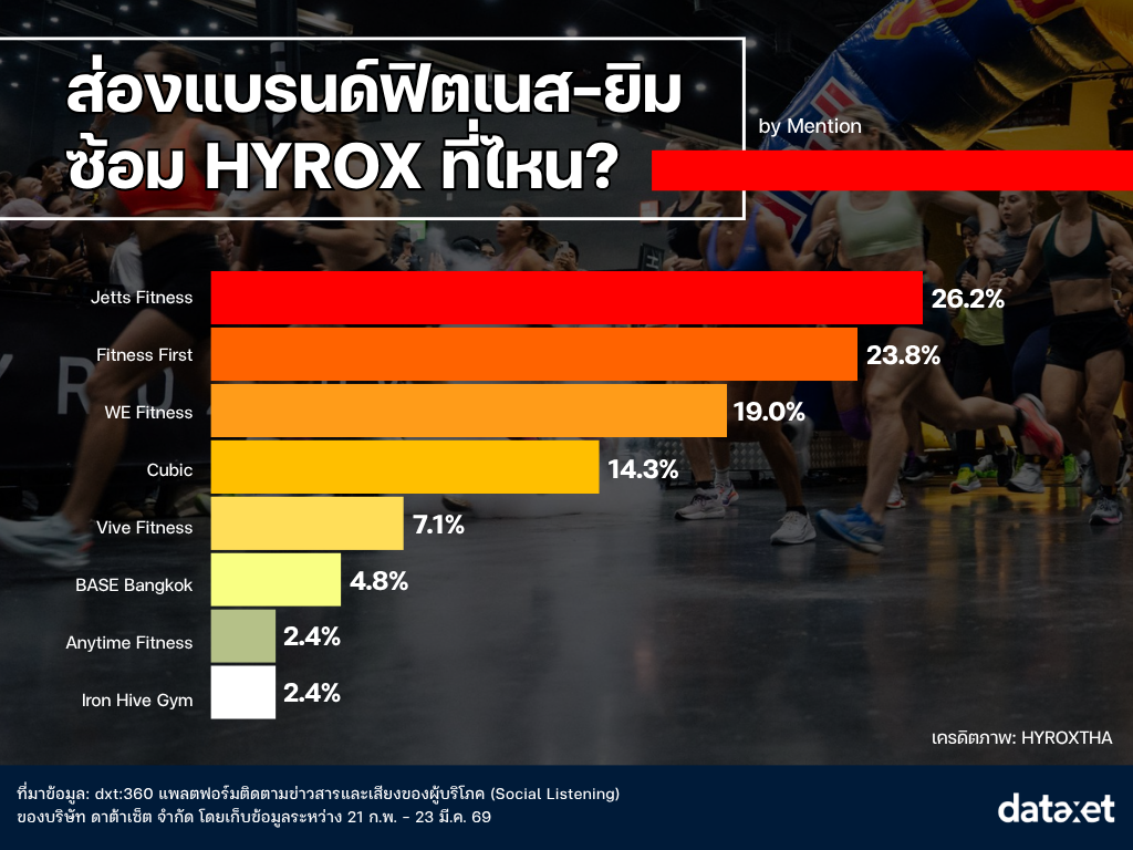 “ประชาชาติธุรกิจ” ชวนดูอินไซต์น่าสนใจจาก dxt:360 Social Listening ในช่วงวันที่ 21 กุมภาพันธ์ – 23 มีนาคม 2569 ซึ่งมีการวิเคราะห์ภาพรวมการพูดถึงประเด็น HYROX บนโลกออนไลน์