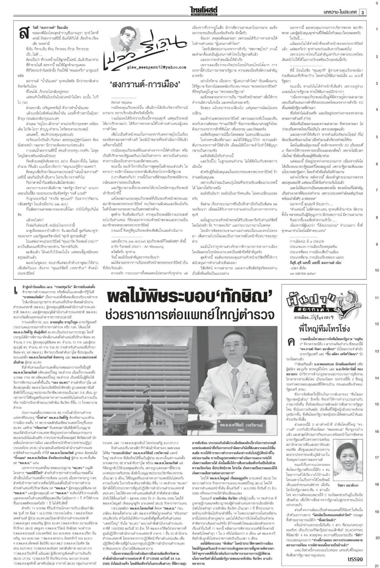 ฉบับวันที่ 13 เมษายน 2569