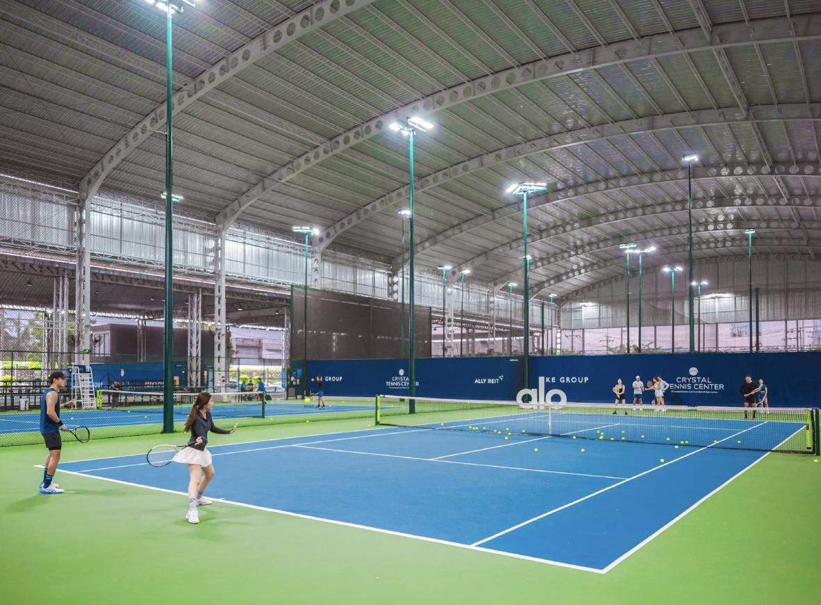 ขณะที่ KE Group ผู้ประกอบการอสังหาและรีเทลรายใหญ่ แม้ไม่ได้ทำสปอร์ตคอมเพล็กซ์ แต่ก็ขอลุยธุรกิจกีฬาเช่นกัน ผ่านการทำ Crystal Sports สนามเทนนิสในร่มมาตรฐานโลก (มาตรฐานเดียวกับ US Open) ย่านเลียบด่วนรามอินทรา