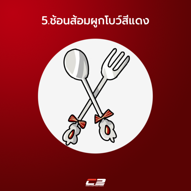 5.ช้อนส้อมผูกโบว์แดง