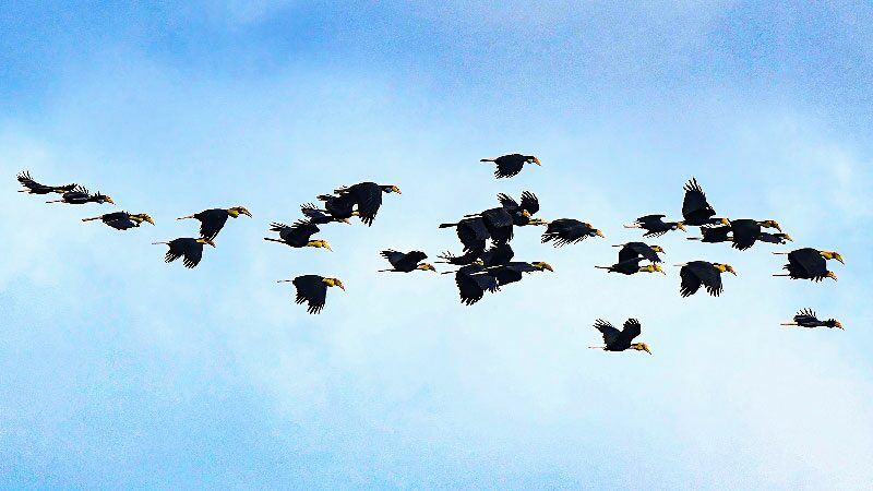 ฮืฮฮา พบฝูงนกเงือกรามช้างปากเรียบ หลายร้อยตัว อพยพ บินมาแวะพักหากินที่สงขลา