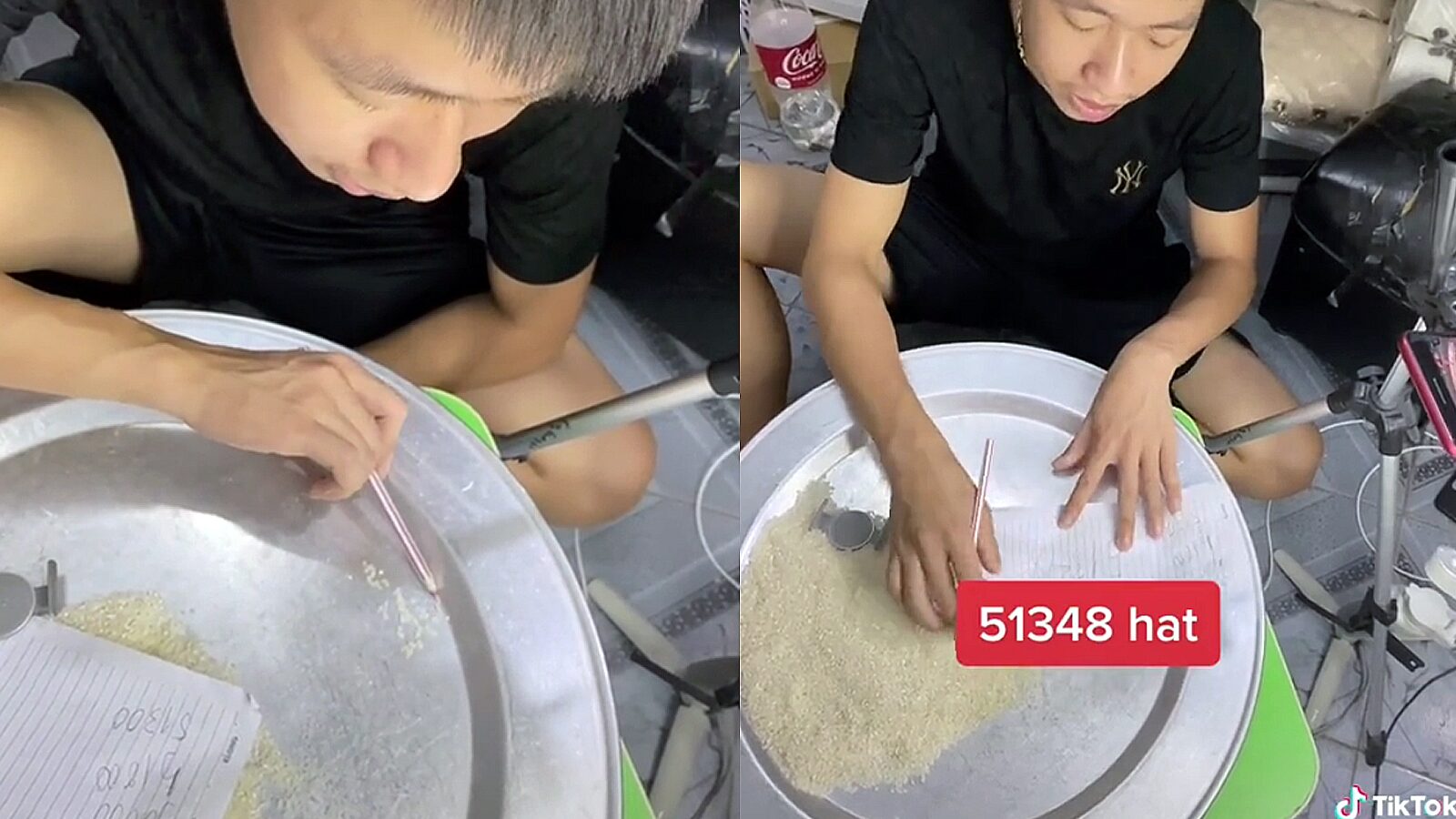 เมื่อวันจันทร์ที่ผ่านมา ผู้ใช้ติ๊กต็อก @thanhkeoo ได้ทำการไลฟ์สดนั่งนับข้าวทีละเม็ด ซึ่งวิธีการนับนั้นไม่ยากแต่ต้องใช้ความพยายามสูง โดยเขาจะเทข้าวหนึ่งถุงลงบนถาด จากนั้นก็แบ่งเป็นกลุ่มเล็ก ๆ แล้วจึงค่อย ๆ เกลี่ยข้าวออกมานับทีละเม็ด