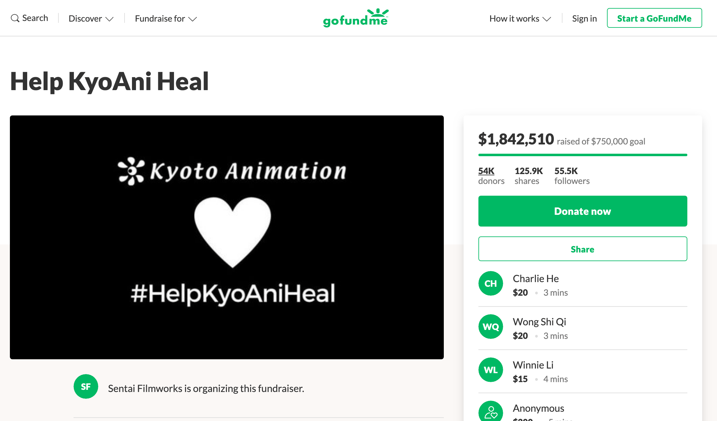 แฟนๆ KyoAni จากทั่วโลกร่วมให้กำลังใจ และระดมทุนบริจาค
