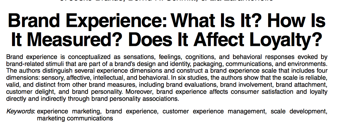 จากงานวิจัยในปี 2009 ที่ตีพิมพ์ลงวารสารวิขาการด้านการตลาดนั้นในหัวข้อของงานวิจัย “Brand Experience: What Is It? How Is It Measured” นั้นพบว่าหลาย ๆ แบรนด์นั้นไม่ได้ทำการสร้างความสามารถที่จะดึงดูดลูกค้าให้อยู่กับแบรนด์ตัวเอง และไม่ได้ทำการสร้าง Brand Experience ในกลุ่มลูกค้าให้เกิดขึ้นมา แต่แบรนด์ที่สามารถทำการสร้าง Customer experience ที่ดีโดยทำการมองภาพรวมและสามารถสร้างประสบการณ์ของลูกค้าได้ดีทุกจุดนั้น จะสามารถสร้างความจงรักภักดีกับลูกค้าได้อย่างง่ายได้ เพราะสามารถสร้างความรู้สึก จนถึงเหตุผลของผู้บริโภคที่จะอยู่กับแบรนด์ได้ จากงานวิจัยชิ้นนี้ทำนักการตลาดนั้นมีข้อมูลอ้างอิงในการสร้างการตลาดในการทำ Customer experience เพื่อสร้าง Customer Loyalty ขึ้นมา โดยทาง creative agency ที่ชื่อ Rufus Leonard ก็ได้ใช้งานวิจัยนี้ และสร้างหลักการว่าแบรนด์ที่จะสามารถสร้าง Customer experience ขึ้นมาได้ดีและส่งผลถึงการทำ Customer Loyalty นั้นจะต้องประกอบด้วยหลักการ 5 ส่วนคือ Feel, Act, Relate, Think และ Sense ซึ่งทั้ง 5 เรื่องนี้มีรายละเอียดดังนี้