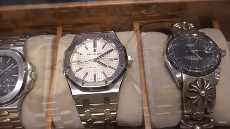 ส่วนเรือนที่ ป๊อก ซื้อเอง patek philippe nautilus 5712 ซื้อมาประมาณ 1,1xx,xxx ตอนนี้ราคาขึ้นไปที่ 2,xxx,xxx กำไรเบิ้ลมาเป็นล้านเลย , AP Royal Oak Selfwinding Chronograph เรือนที่ซื้อเอง 3,xxx,xxx เป็นทองหน้าฟ้า แพงที่สุดตั้งแต่ซื้อมา เมียถึงกับถามตั้งแต่ซื้อมาใส่ไปกี่ครั้ง ป๊อก บอกว่าใส่ไป 5 ครั้ง ข้อเสียคือหนักมาก เพราะทำจากทองทั้งเรือน