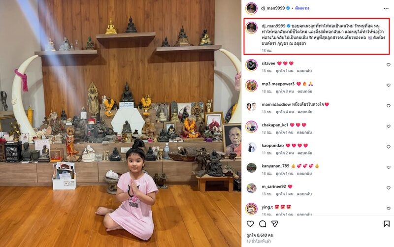 อ่านข่าวต้นฉบับได้ที่ : ดีเจแมน ขอบคุณลูกสาวดึงสติพ่อกลับมา-ทำให้รู้ว่าพ่อจะไม่กลับไปเป็นคนเดิม